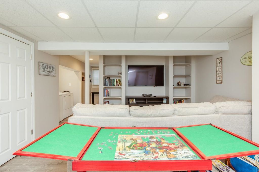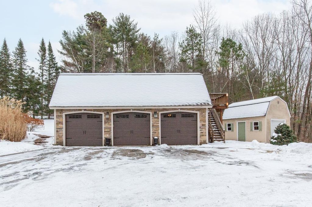Your bigger, better Derry condex option has arrived. Come have a look at this unique Gambrel style Condex option in South Derry near the Windham line. Great location for commuting right off Rt 28. You'll find more than you expected in this wonderful park-like setting. A true 2 bedroom with the option for a third bedroom in the basement. Three floors of living and all of it in exceptional condition. First floor features a large eat-in kitchen and living room with a half bath. Second level offers two generous-sized bedrooms and of course a full bath. The finished basement is very cozy with a bonus family room, 3/4 bath, laundry area and a separate den which would be a smart choice, as an office, craft room or third bedroom option. Basement has solid surface flooring, built-in shelving and recessed lighting. Other features include renovated bathrooms, recessed lighting throughout, stand-by On-Demand generator, 1 car dedicated garage space in the detached 3 car garage which also features plenty of walk-up storage above, a large shed which also has storage above. This wonderful setting has an inviting patio area, and a large side-to-side deck that's just perfect for admiring the wooded lot. There's a lot to love about this home. Must-see. Some notice needed for showings.