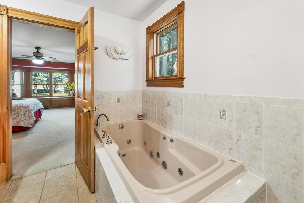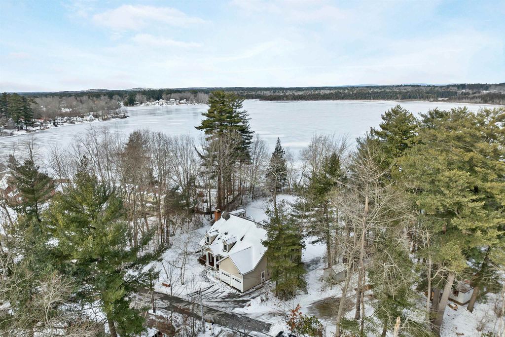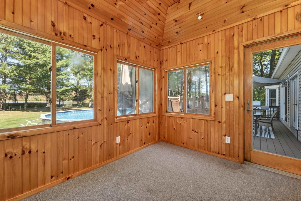 A fantastic opportunity to own this sprawling property on Powwow pond! The spacious and inviting lawn leads to a private beach and dock. A nature lover and water enthusiast's dream! Attached 2 car garage with epoxy flooring. 1st floor offers a living room, kitchen, dining room, home office/study, primary bedroom with private bath and walk-in closet, along with an additional bathroom and bedroom leading to a 3-season room out to the rear deck and pool area. 2nd floor boasts a TV room, kitchenette, full bath, 2 bedrooms. and a large unfinished room awaiting your finishing touches. Incredibly versatile floor plan throughout. Enjoy the breathtaking sunsets and views along with everything that living on a waterfront property has to offer. Welcome home!