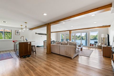 WATERFRONT SUNRISES AWAIT! Completely renovated from top to bottom, this stunning 4-bedroom, 3-bath home offers modern living with unmatched views. Features include a spacious open layout, ample parking, and a private bonus suite with its own entrance - perfect for guests, in-laws, or rental income. Best of all, enjoy peace of mind with public water and sewer - no septic or well to maintain!